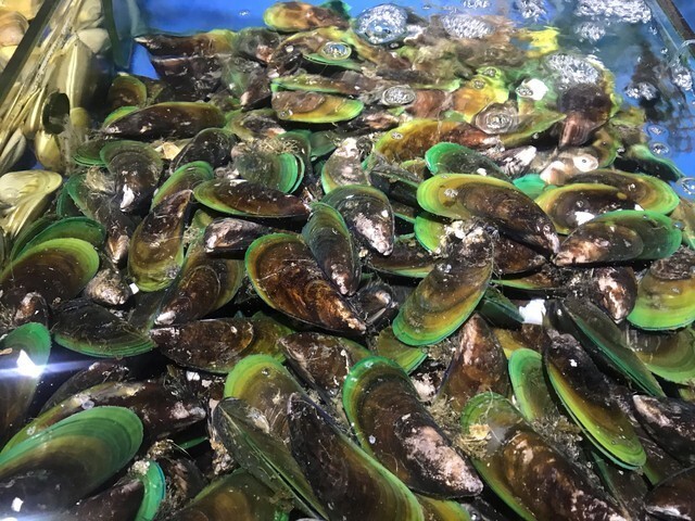 海虹也叫贻贝、青口贝,价格便宜,现在市场上三四块钱一斤,很多大爷大妈一买就是一大袋,拿回去煮煮就吃。